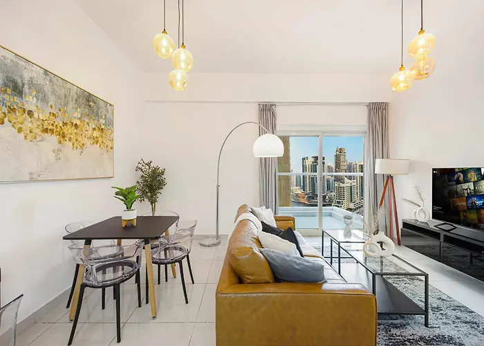 In the vibrant heart of Dubai Marina, the Stunning Space With Full Marina View is an exquisite retreat designed for discerning travelers. This exceptional locale is renowned for its proximity to The Beach at JBR, an entertainment haven where guests can indulge in al fresco dining, unwind on sun-kissed sandy stretches, and immerse themselves in the dynamic atmosphere of the waterfront.